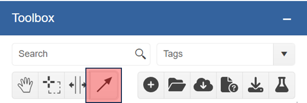 The toolbox is the central place to find entities/objects needed for the workflow.