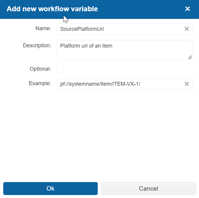 Dialogue to create a new workflow variable