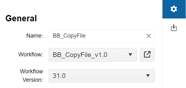 Workflow Version | Version of the workflow. It is possible to select a specific version. Alternatively, selecting x.Latest will cause the latest minor version of the workflow major version x to be executed. |