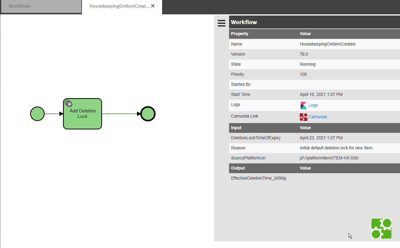 The Camunda cockpit can be launched for the workflow