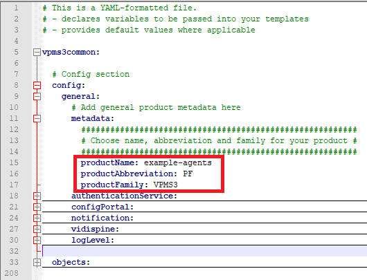In the general configuration you can determine your product's name, abbreviation and family by adapting the following parameters