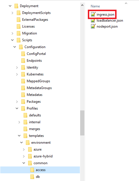 whereas ingress.json is in the Deployment\Scripts\Configuration\Profiles\templates\environment\common\access folder of the deployment package.