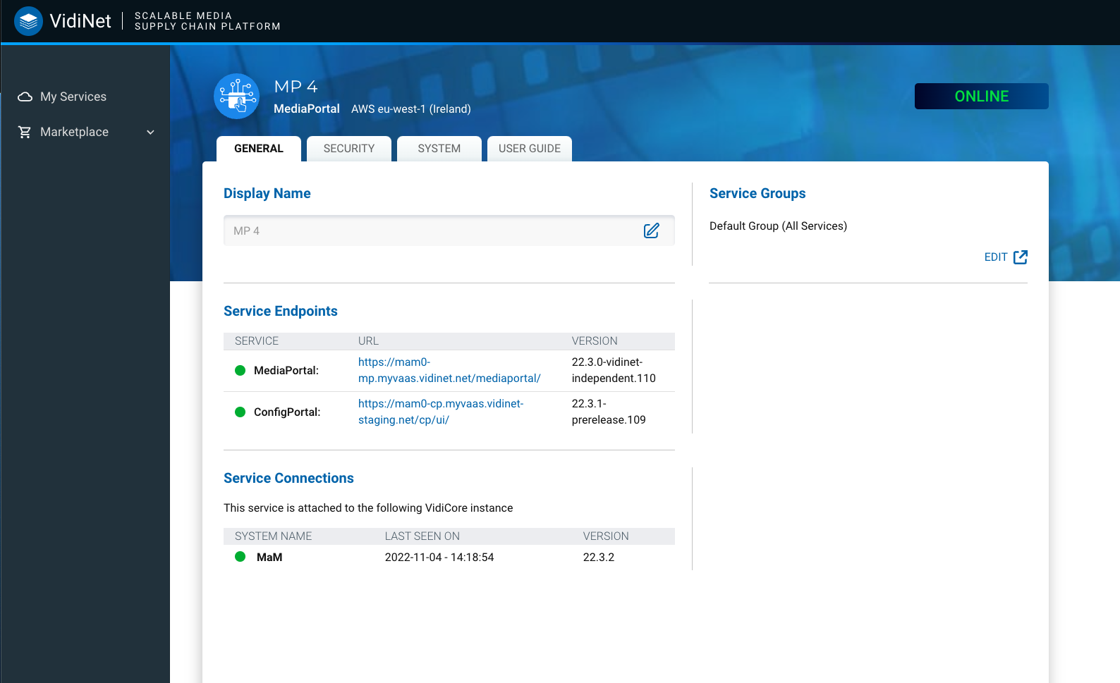 Once MediaPortal is launched you will find links to both MediaPortal and Configportal service endpoints when inspecting the MediaPortal service.