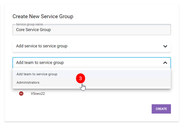 After you’ve specified the services, you can add which team or teams (3) are attributed to those services. Keep in mind that all administrators can manage all services.