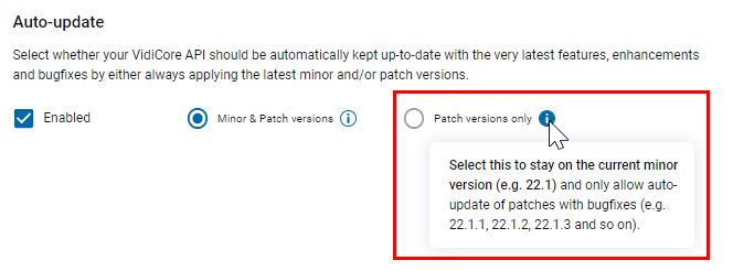 If you want to remain in the current version and only want receive bug fixes, select the Patch versions only option.