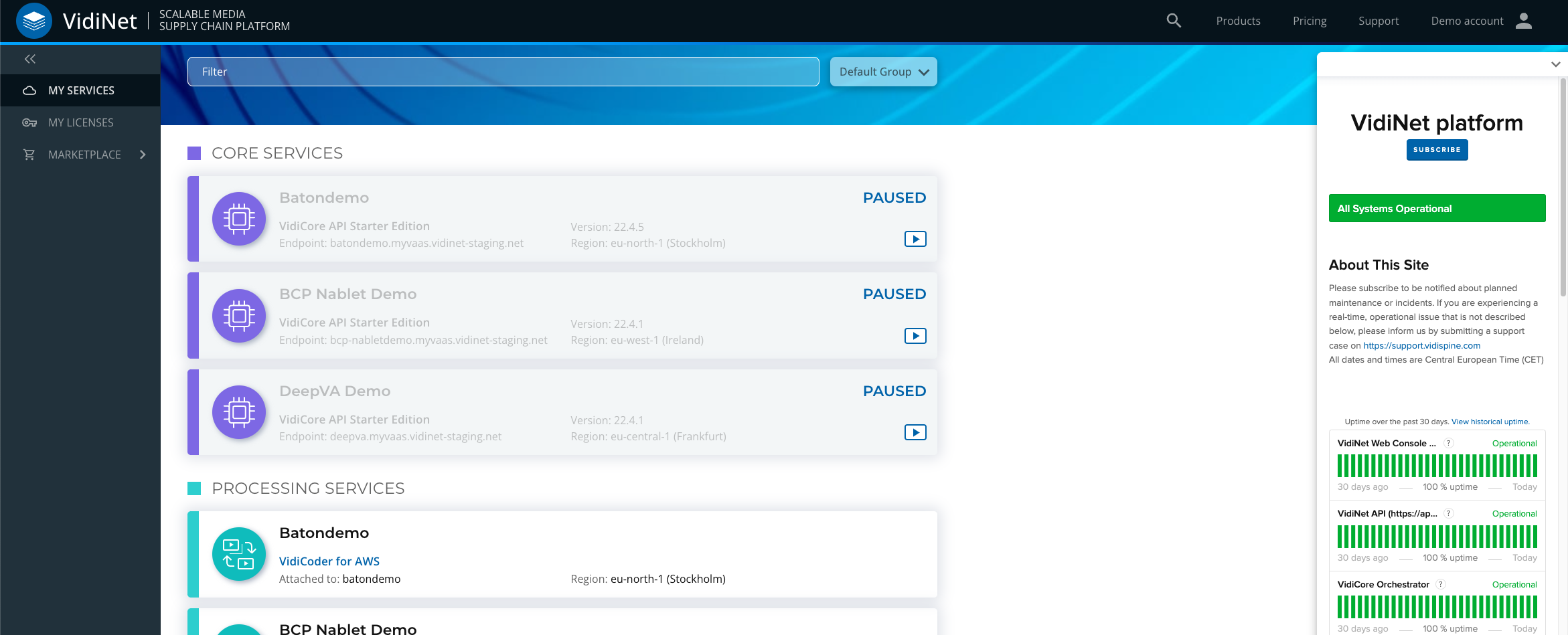 Make sure to subscribe to VidiNet platform status page for maintenance, incident report and post mortems.