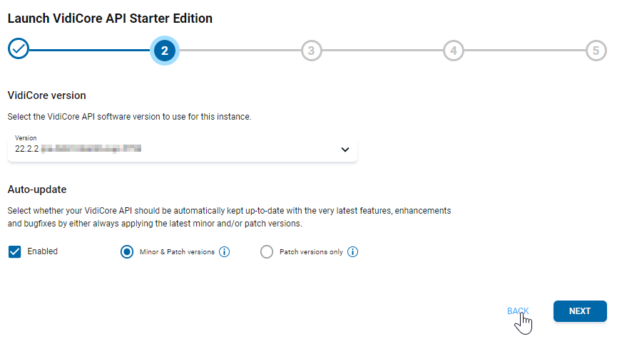 The next phase in the launch guide offers one the choice of which version of VidiCore you want to start with and how updates are managed.