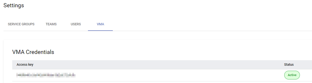 VMA Credentials in Settings